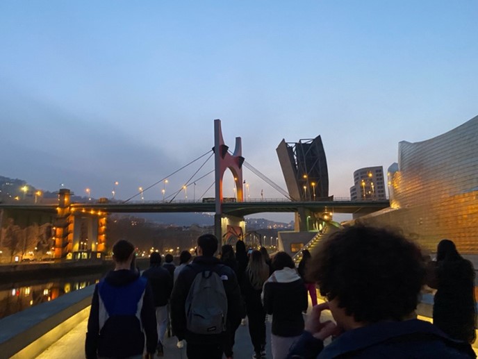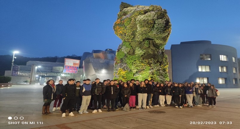 Après un long voyage en bus , nous sommes partis nous balader près du musée Guggenheim à Bilbao, et nous avons découvert Puppy, une statue géante en fleurs représentant un chien. Nous avons vu aussi une statue représentant une araignée (mama).