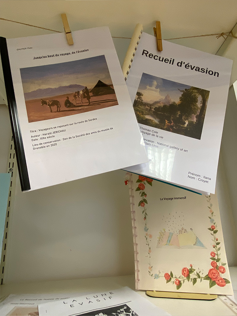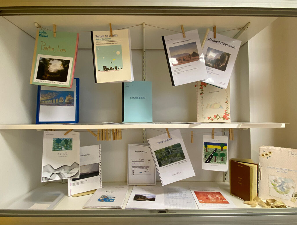 Dans le cadre du travail en français avec Mme Waszkiewicz, les classes 5B et 5C ont composé leurs anthologies poétiques sur le thème du voyage. Ils ont pu, par la suite, exposer leurs travaux dans l’espace de ressource du pôle.