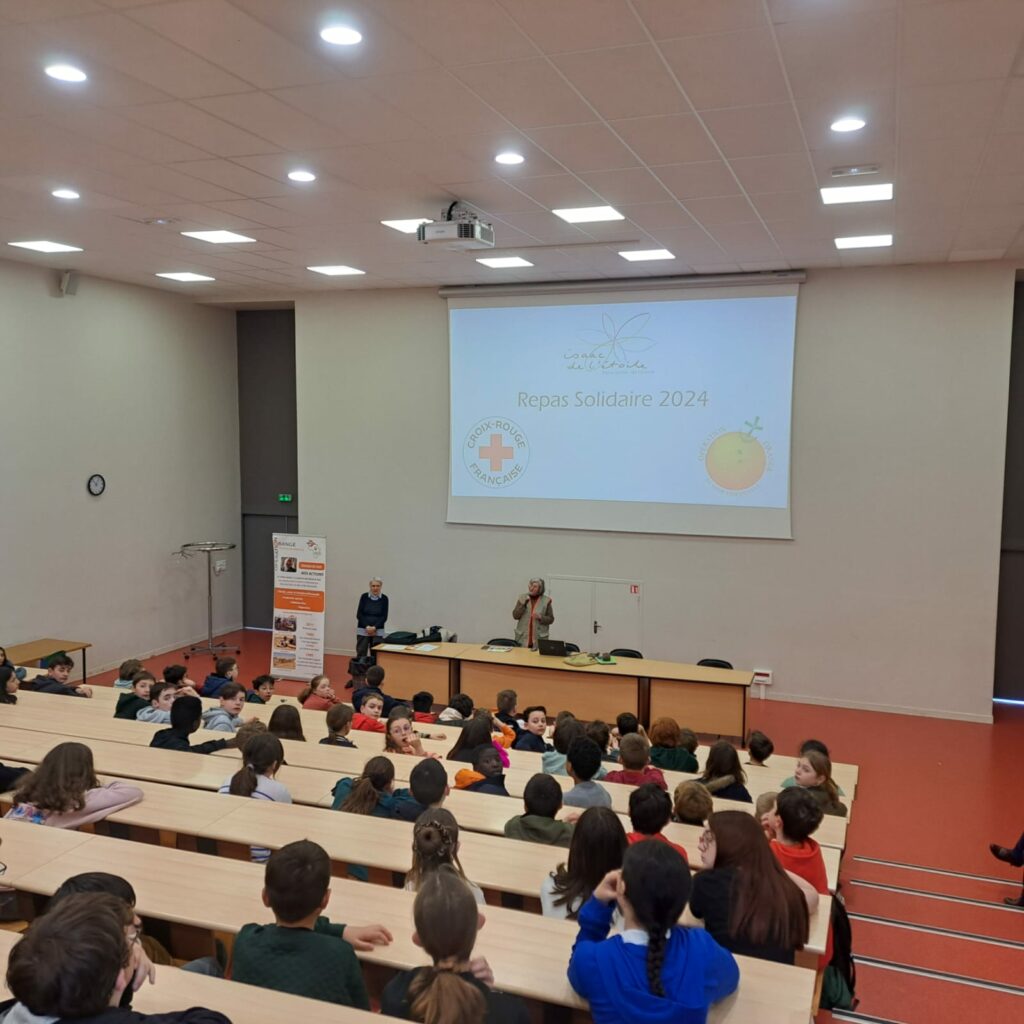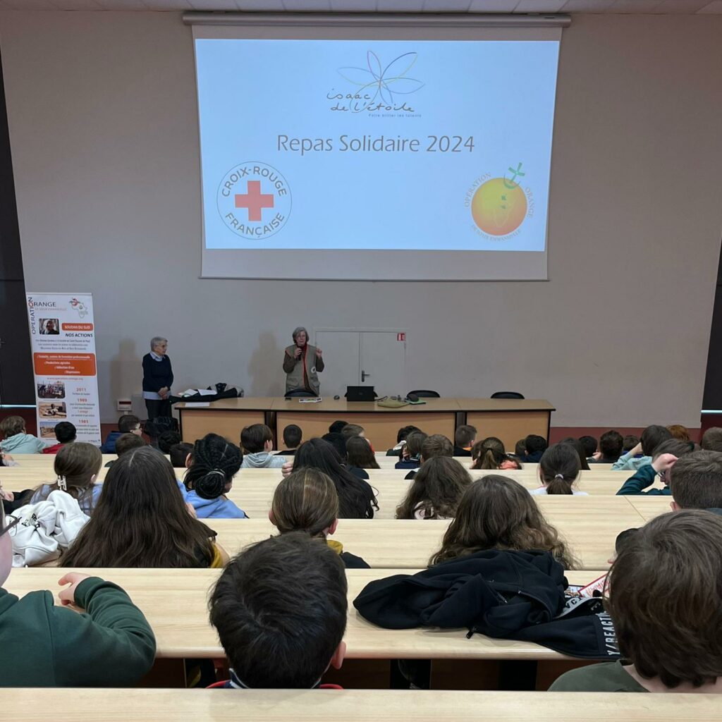 Pour se préparer au traditionnel repas HRO, temps fort dans notre établissement, les élèves du pôle 6e -5e-4e ont reçu les représentantes des 2 associations bénéficiaires du repas solidaire : Mme Chancerel, de l’opération Orange de Sœur Emmanuelle, qui permet le développement d’action d’éducation au soudan du Sud, et, Mme Simonnet, du relais de la Croix Rouge de Poitiers, qui vient en soutien des personnes en situation de précarité sur Poitiers.