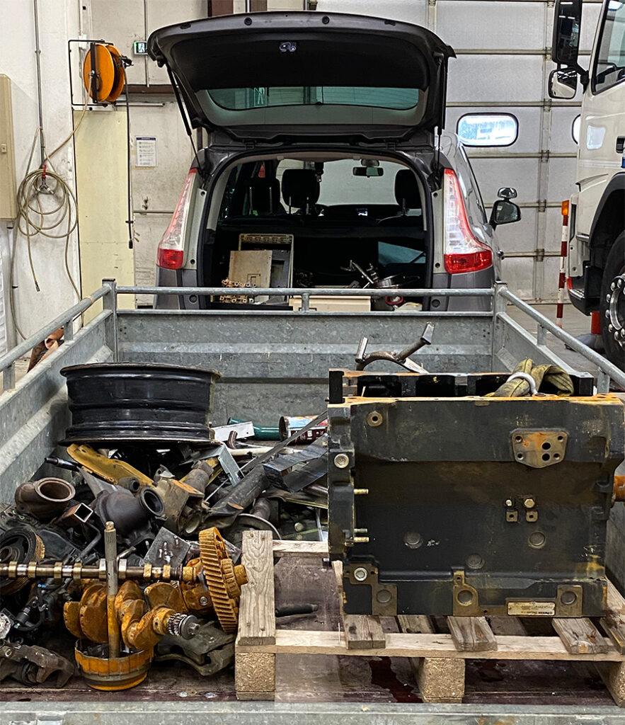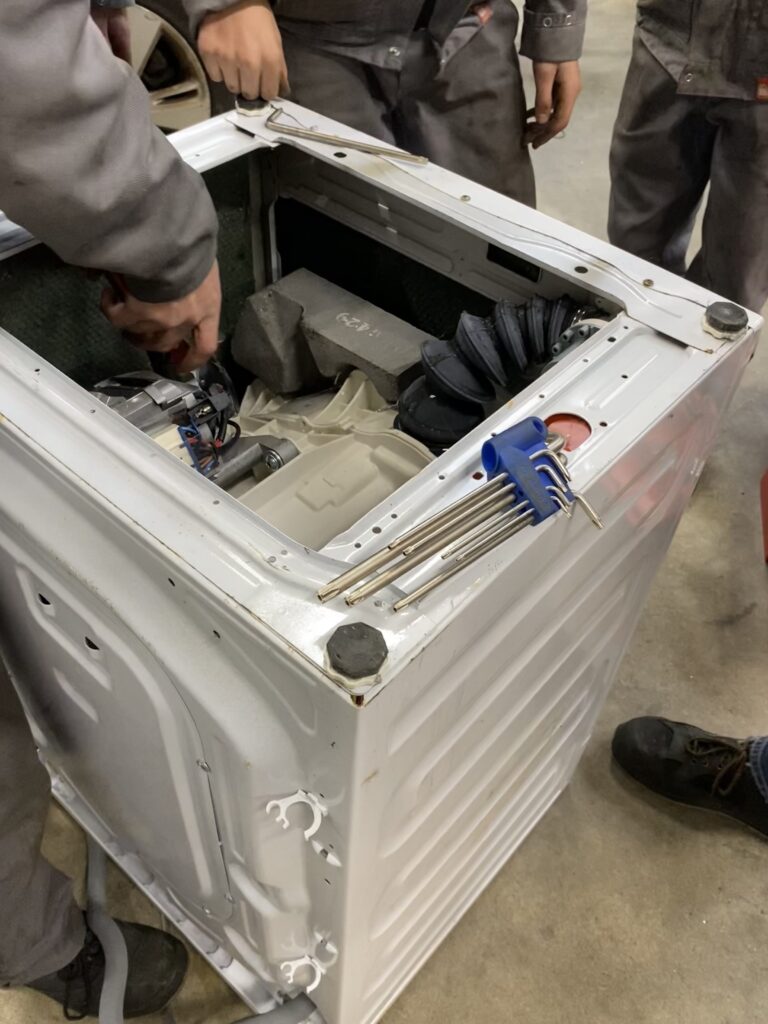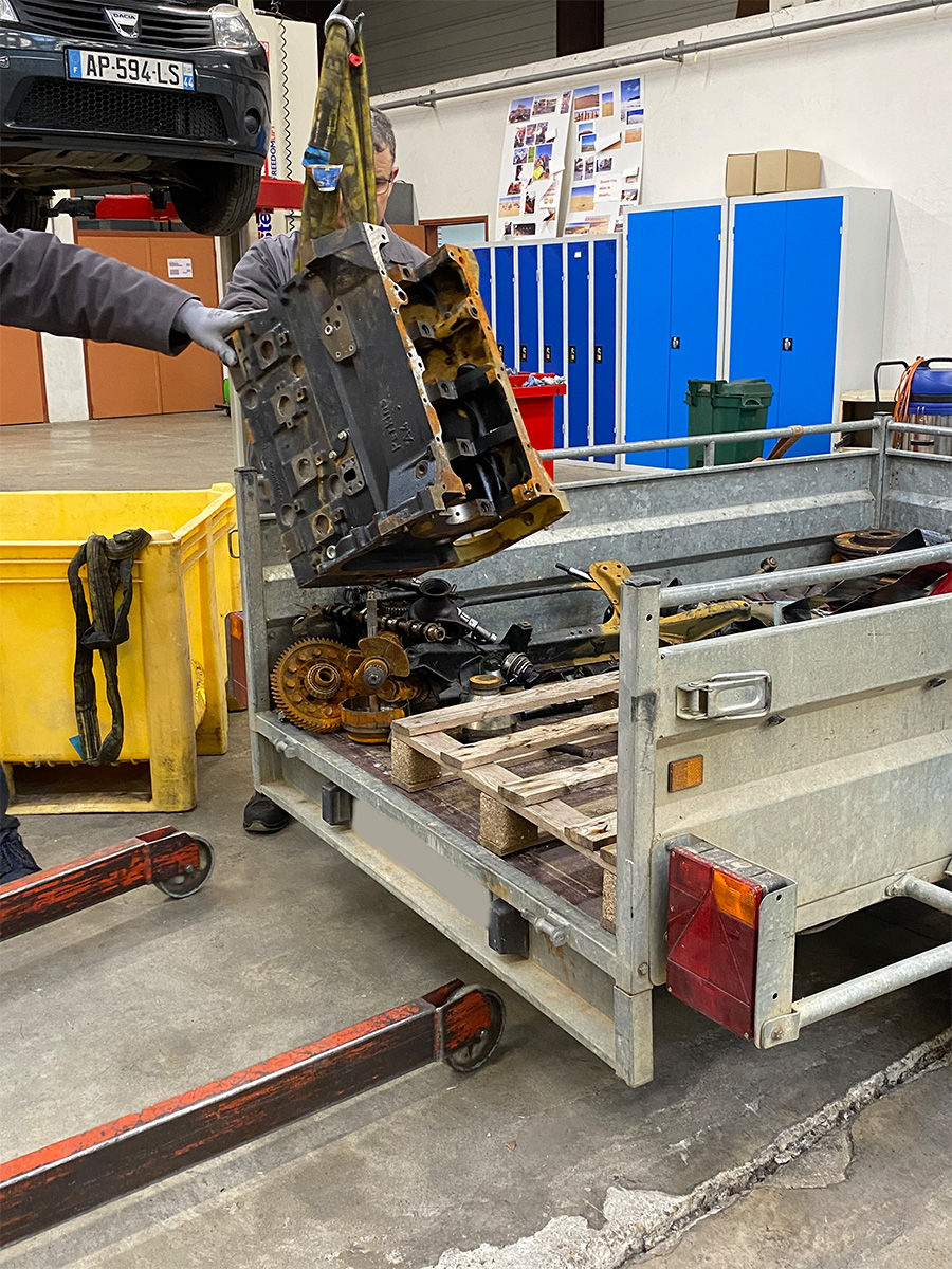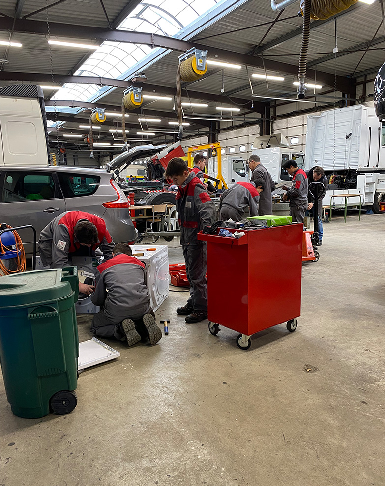 Pour financer leur voyage scolaire à Bruxelles, les élèves du secteur mécanique Poids Lourds récupèrent les petits et les gros appareils hors-services pour en récupérer les métaux et les trier.